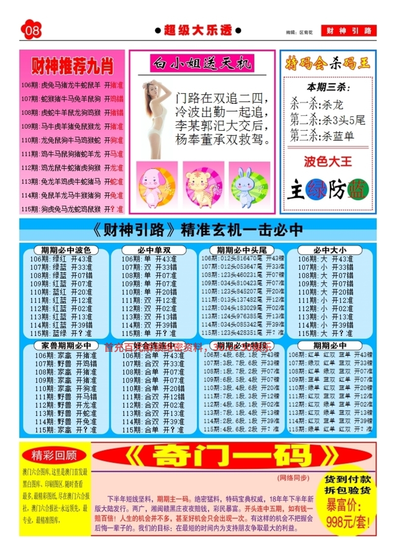 | 115期:单双各四肖:蛇01准 |